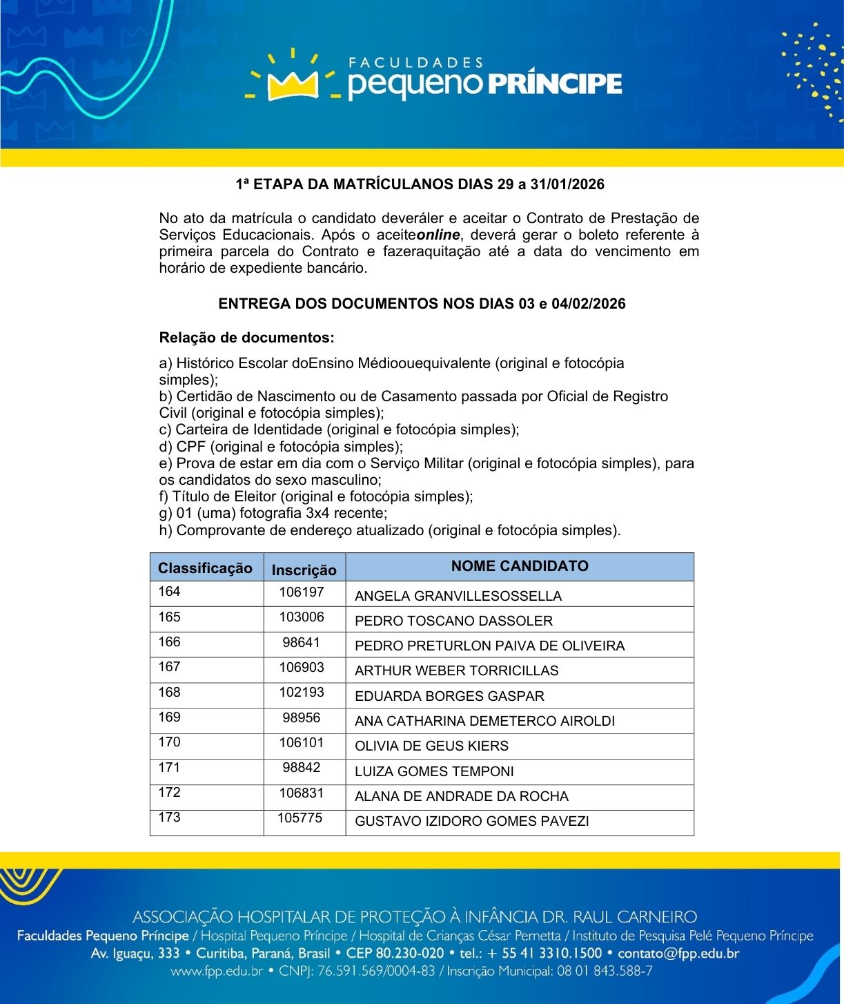 – O curso de Medicina da Faculdades Pequeno Príncipe teve reconhecimento renovado pelo Ministério da Educação pela portaria nº 348, em 17 de junho de 2025. Conceito 5.